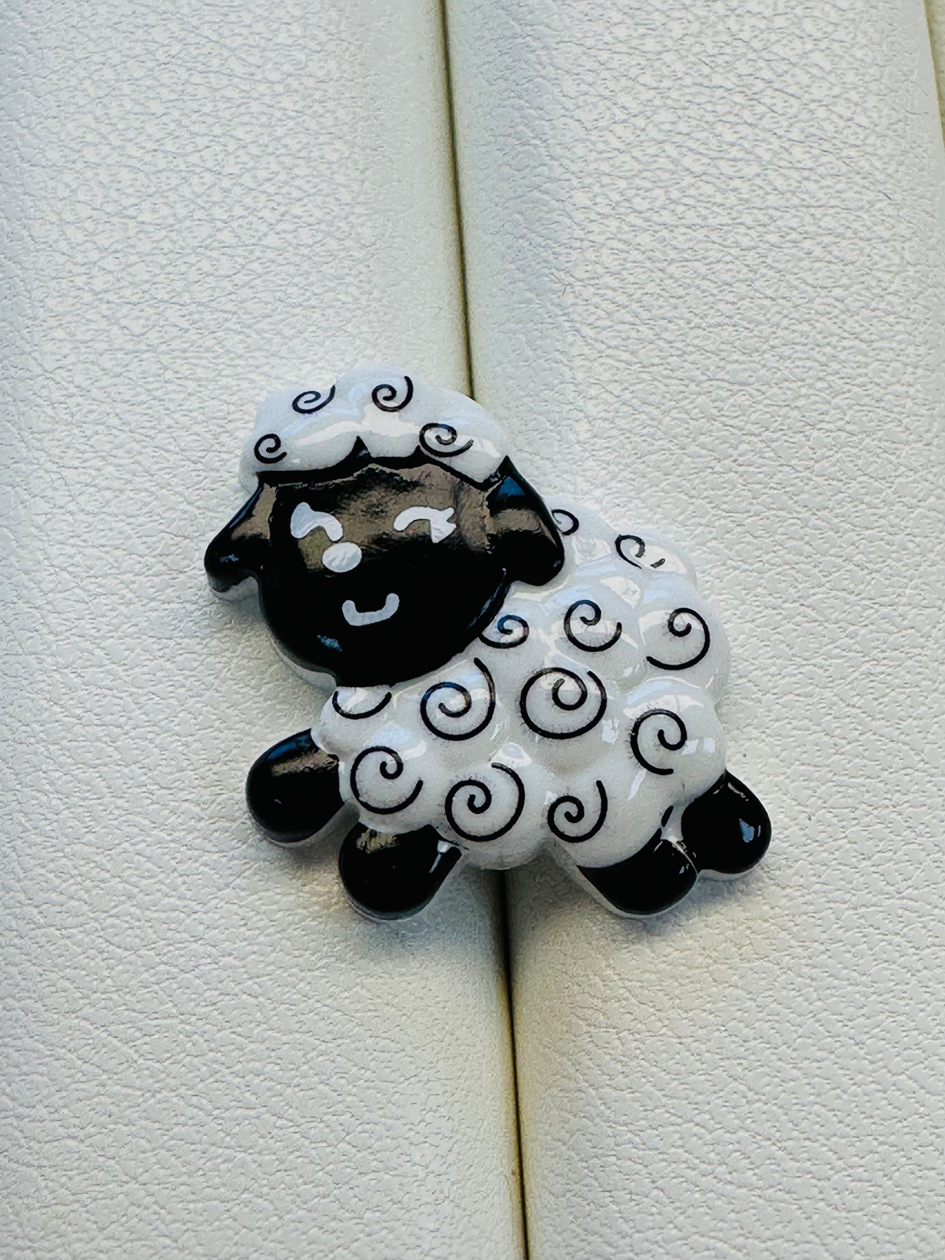 Bring a little countryside cheer to your sewing box with this delightful sheep button. Designed in classic black and white with a glossy finish, each button features a smiling sheep with softly swirled fleece and lovely definition — a playful yet polished detail that stands out beautifully on handmade pieces.