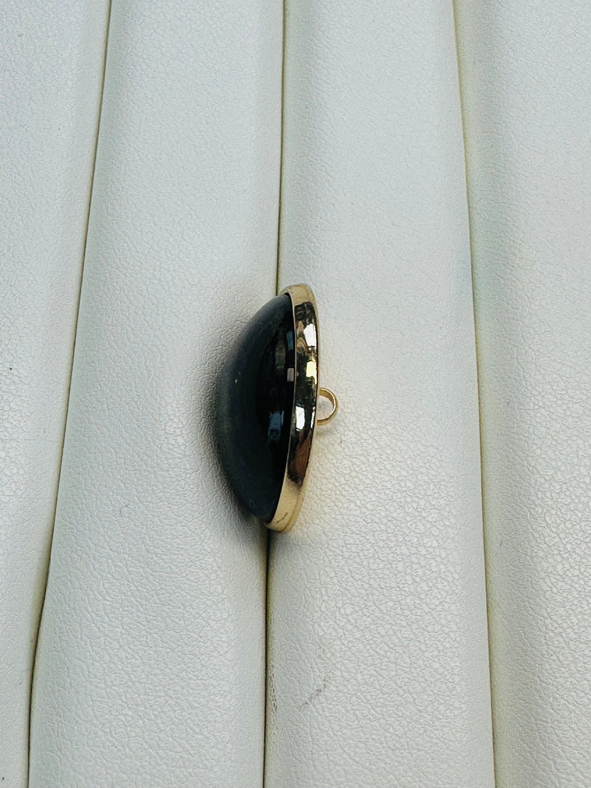A gorgeous 22mm tabby cat button featuring a beautifully detailed feline portrait beneath a smooth glass dome. Framed in metal, the design has wonderful depth, with vivid green eyes and expressive features that create a truly eye-catching finish.